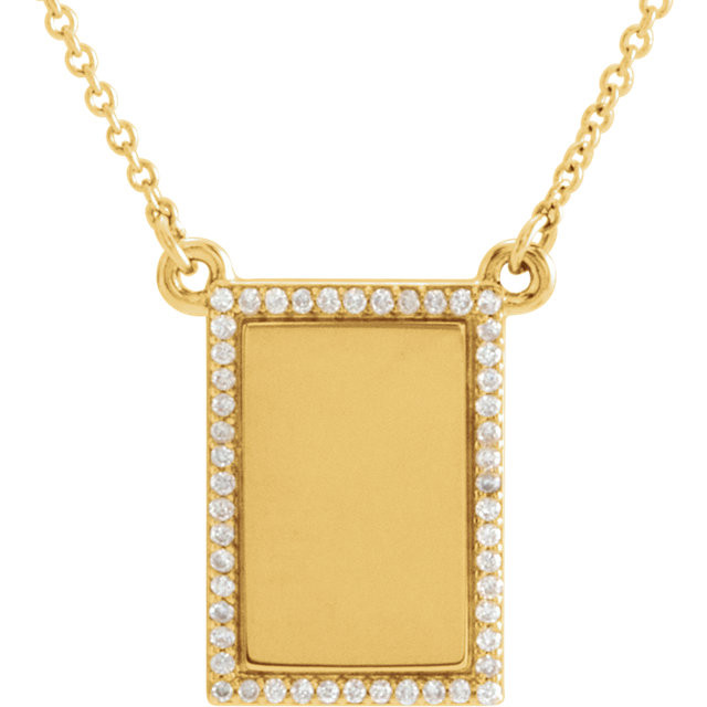 Genuine 14 Karat Yellow Gold 0.12 Carat Diamond Bar 18 inch Necklace
