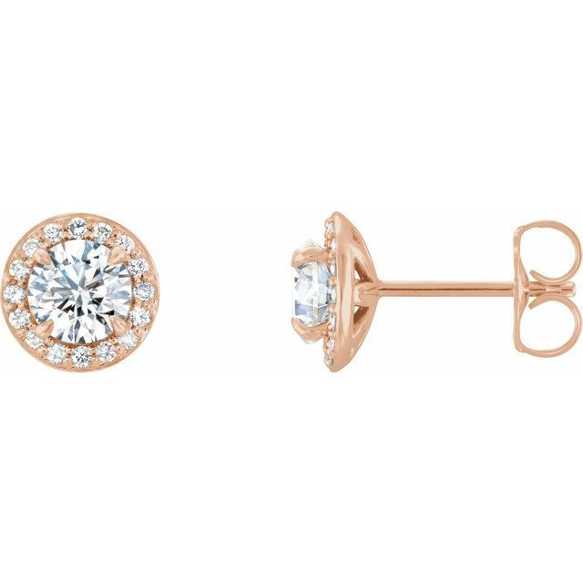 14 Karat Rose Gold 5 mm Round Forever One Moissanite and 0.12 Carat Diamond Earrings