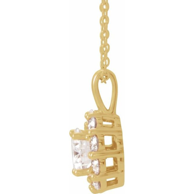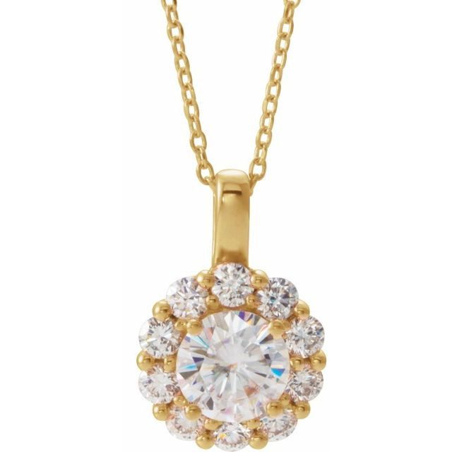 Created Moissanite Necklace in 14 Karat Yellow Gold 6.5 mm Round ™ Moissanite & 0.60 Carat Diamond 16 to 18 inch Pendant