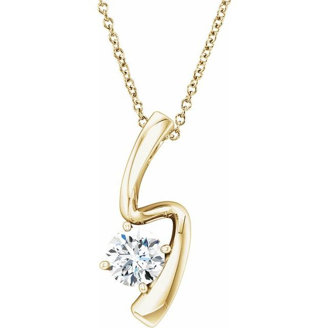 This beautiful 14 Karat Yellow Gold 6 mm Round Forever One™ Moissanite 16 inch Necklace - Exquisite Round Created Moissanite Necklace is a timeless jewelry item made in the highest standards for Gemstone Fashion jewelry