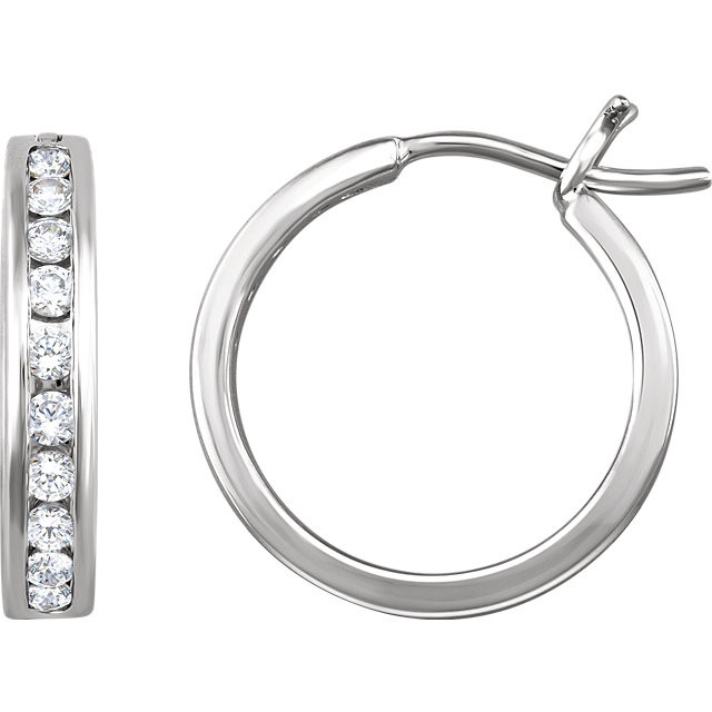 White Diamonds set in 14 Karat White Gold 0.50 Carat Diamond Hoop Earrings