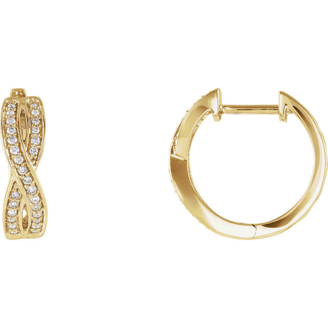 This beautiful 14 Karat Yellow Gold 0.20 Carat Total Weight Diamond Infinity-Inspired Hoop Earrings is set with selected fine genuine diamond and set with the highest craftsmanship standards in 14kt Yellow gold