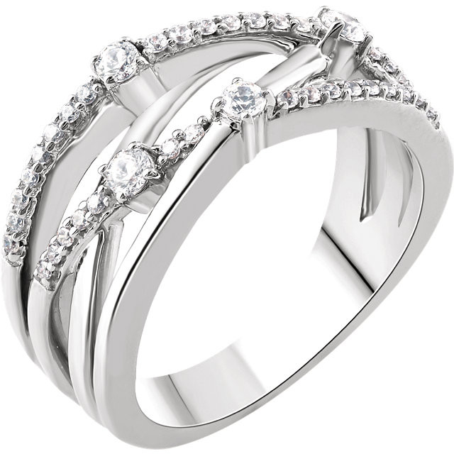 14 Karat White Gold 0.33 Carat Total Weight Diamond Criss-Cross Ring is set with selected fine genuine diamond and set with the highest craftsmanship standards in 14kt White gold