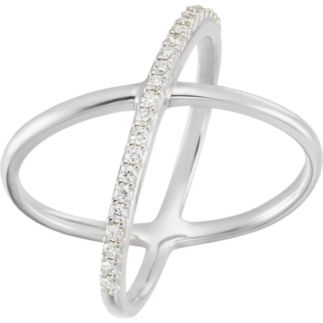 Genuine Diamond set in 14 Karat White Gold 0.25 Carat Round Diamond Criss Cross Ring