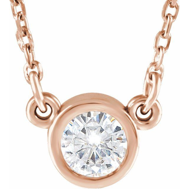 This beautiful 14 Karat Rose Gold 3 mm Round Forever One Moissanite 18 inch Necklace - Beautiful Round Created Moissanite Necklace is a timeless jewelry item made in the highest standards for Gemstone Fashion jewelry
