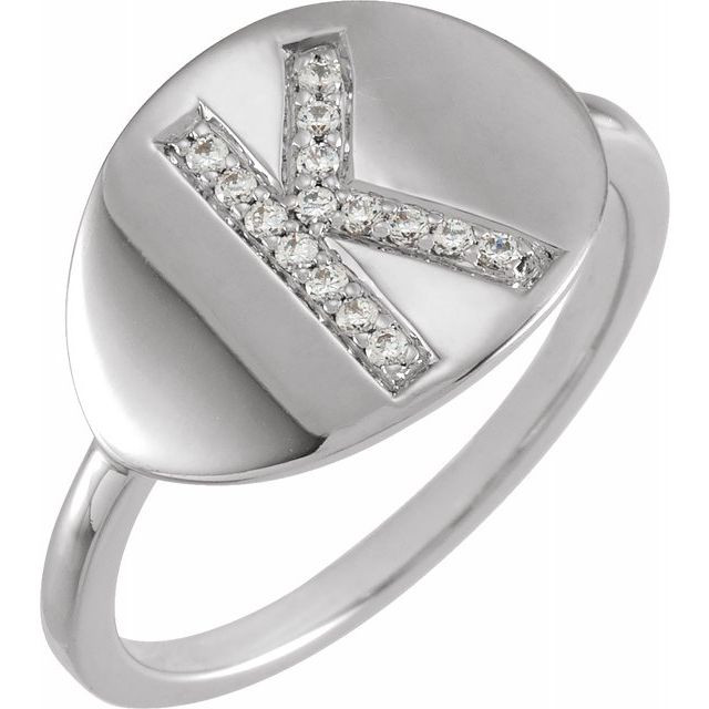14 Karat White Gold Initial K 0.10 Carat Diamond Ring - Elegant Round Diamond Ring is a timeless jewelry item made in the highest standards for Diamond Fashion jewelry