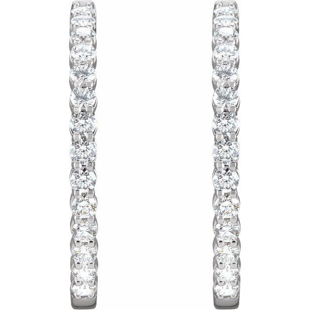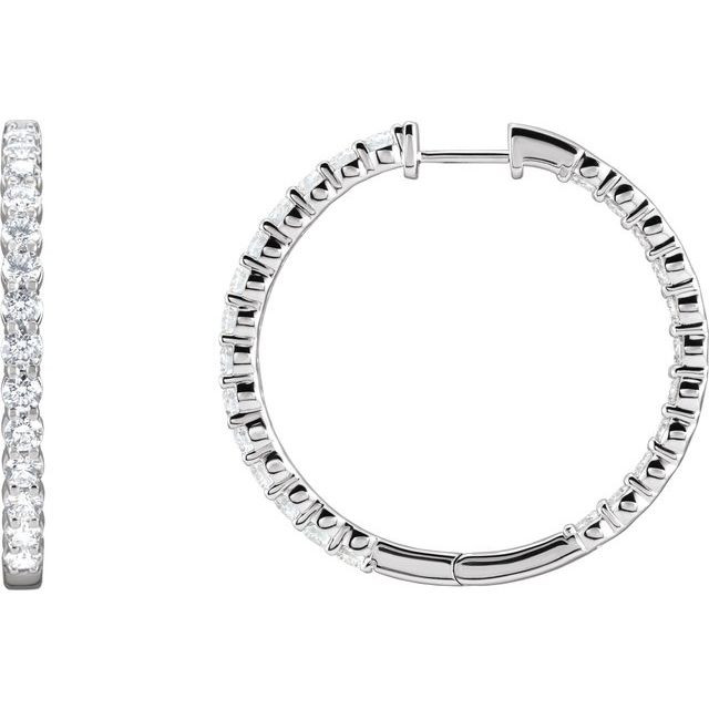14 Karat White Gold 3 Carat Lab-Grown Diamond Inside-Outside Hinged 30 mm Hoop Earrings Comes Set With