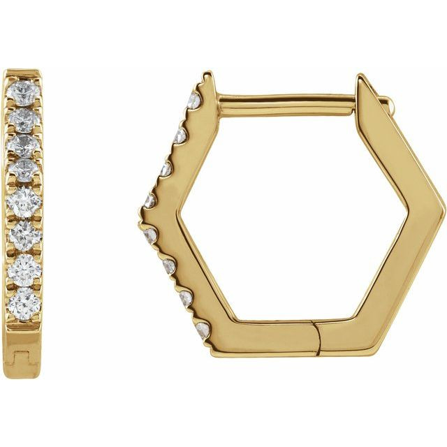 14 Karat Yellow Gold 0.13 Carat Diamond Geometric Hinged Hoop Earrings