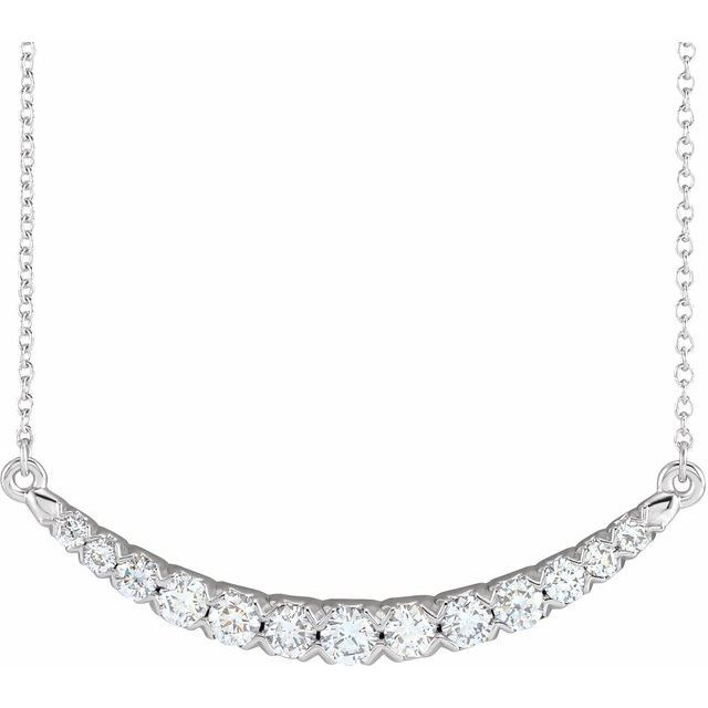 14K White 0.75 CTW Lab-Grown Diamond French-Set Bar 18 inch Necklace Comes Set With