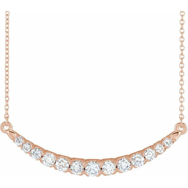14 Karat Rose Gold 0.75 Carat Lab Grown Diamond French-Set Bar 18 inch Necklace Comes Set With