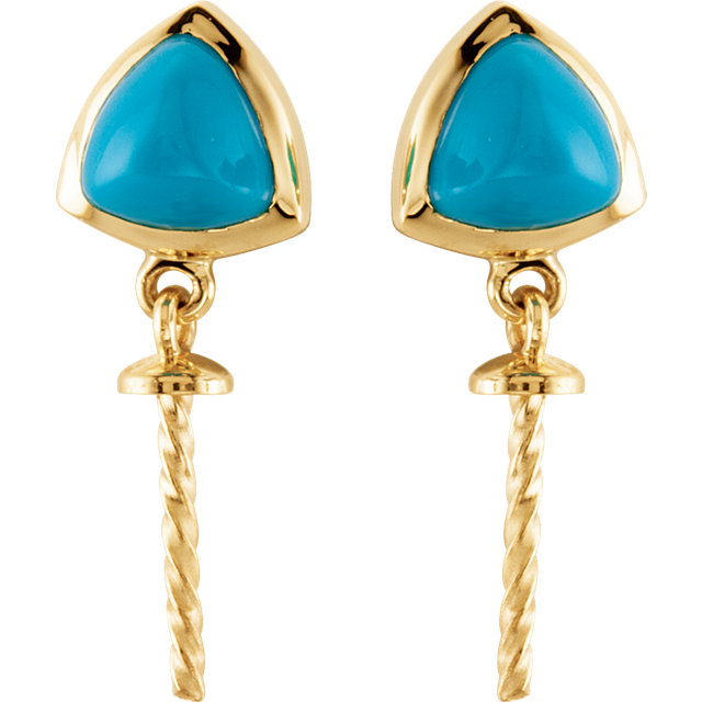 14 Karat White Gold Turquoise Semi set Earrings for Pearl