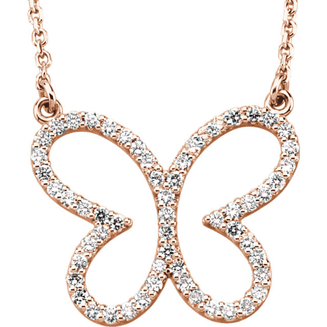 Buy 14 Karat Rose Gold 0.33 Carat Diamond Butterfly 16 inch Necklace