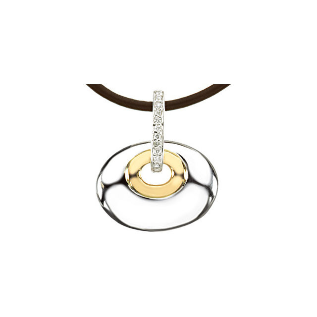 Sterling Silver and 14 Karat Yellow Gold .07 Carat Diamond Oval 18 inch Necklace