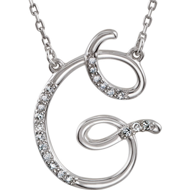 This beautiful 14 Karat White Gold Letter "G" 0.10 Carat Total Weight Diamond Initial 17" Necklace is set with selected fine genuine diamond and set with the highest craftsmanship standards in 14kt White gold