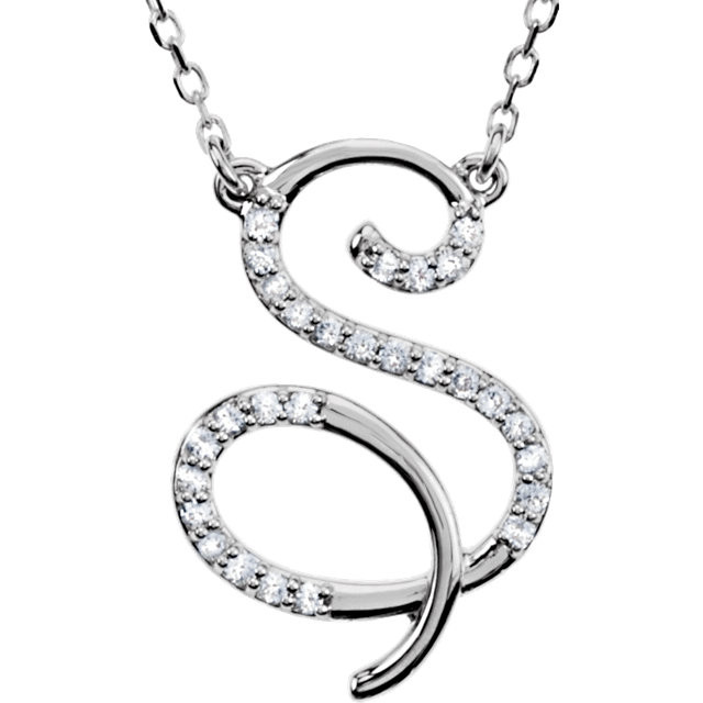 14 Karat White Gold Letter S 00.17 Carat Diamond 17 inch Necklace
