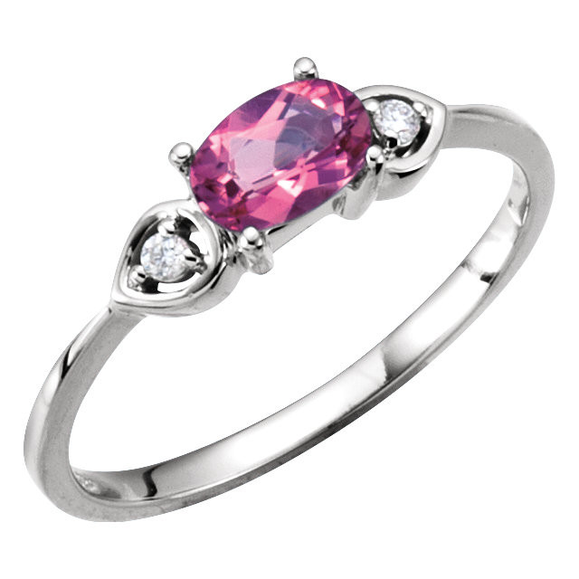 Pink Tourmaline & Diamond Accented 3-Stone Ring is set with selected fine genuine pink tourmaline and set with the highest craftsmanship standards in 14kt White gold