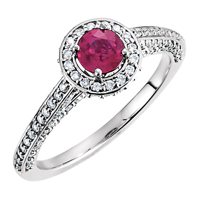 Platinum Ruby and 0.60 Carat Diamond Engagement Ring