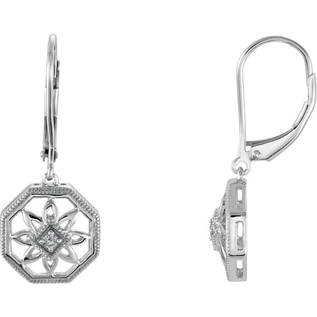 14 Karat White Gold .04 Carat Diamond Lever Back Earrings