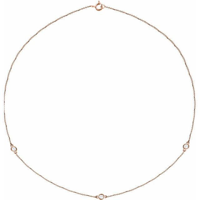 14 Karat Rose Gold 0.33 Carat Lab Grown Diamond 3 Station 18 inch Necklace
