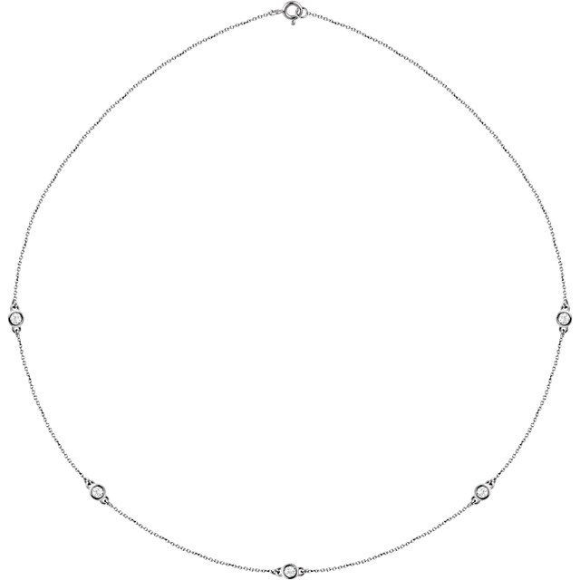 14 Karat White 1/2 Carats Lab Grown Diamond 5-Station 18 inch Necklace Comes Set With