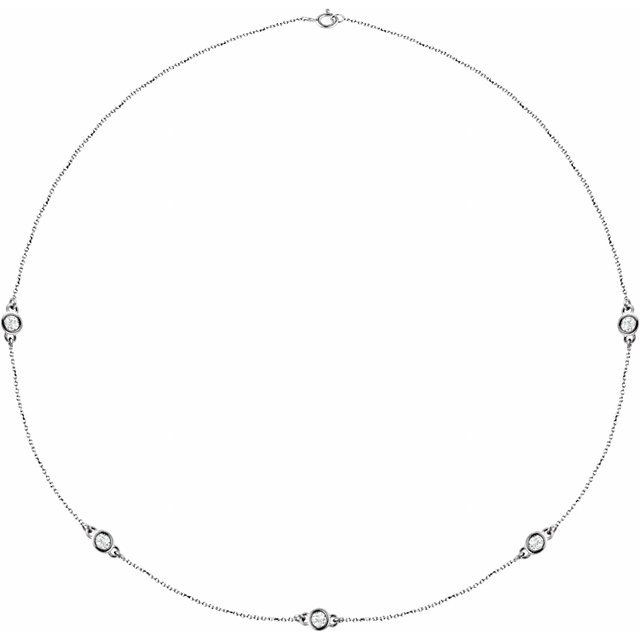 14 Karat White Gold 1.00 Carat Lab Grown Diamond 5-Station 18 inch Pendant