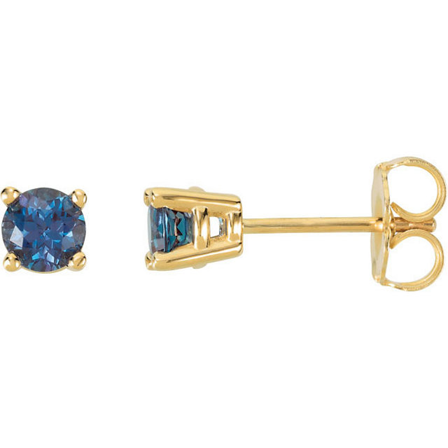 This beautiful 14 Karat Yellow Gold 4mm Round Genuine Created Created Alexandrite Friction Post Stud Earrings is set with selected fine alexandrite and set with the highest craftsmanship standards in 14kt Yellow gold