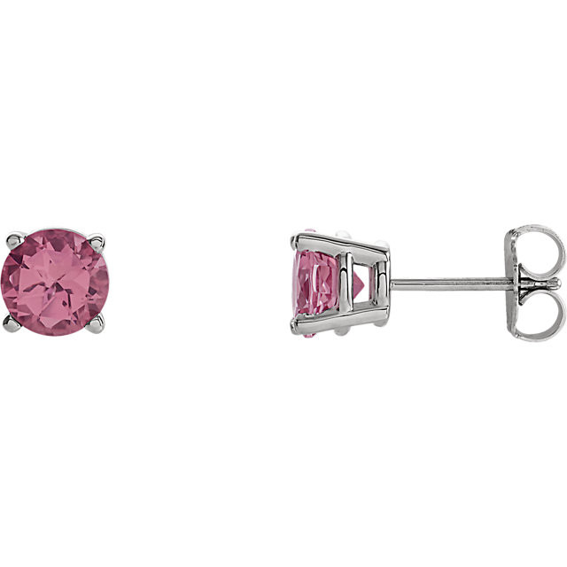 14 Karat White Gold 6mm Round Pink Tourmaline Post Stud Earrings