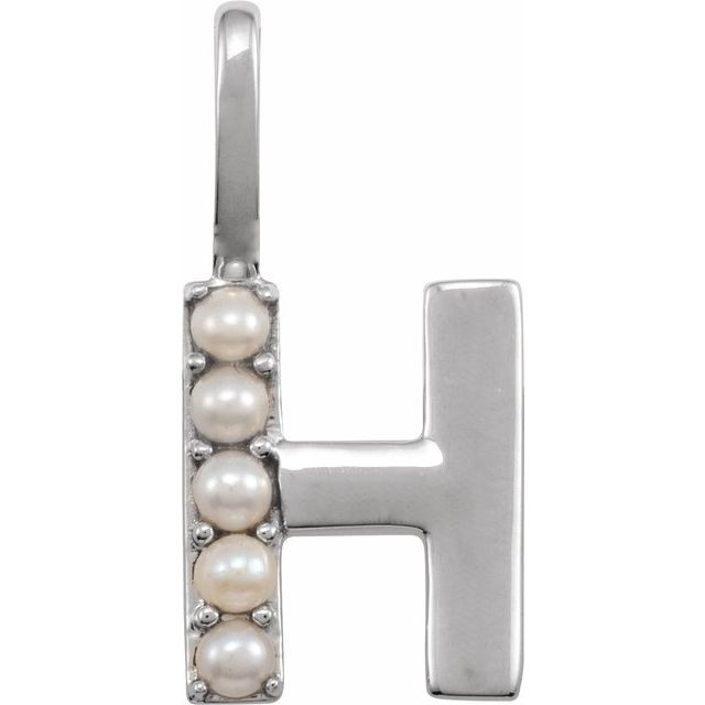 14 Karat White Gold Cultured White Pearl Initial H Charm