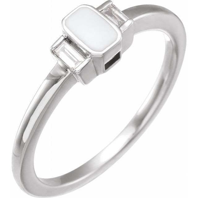 14 Karat White Gold and .08 CTW Natural Diamond & White Enamel Ring Items consists of resin enamelComes Set With