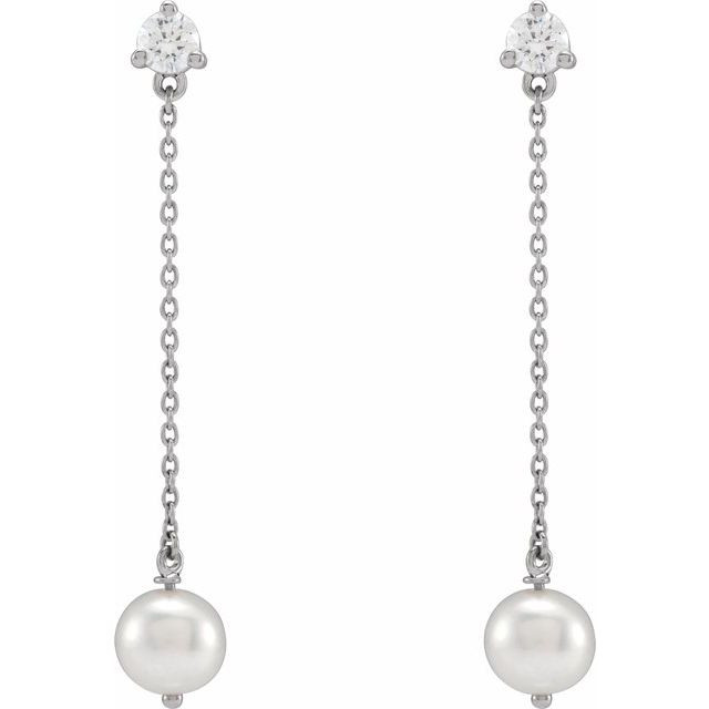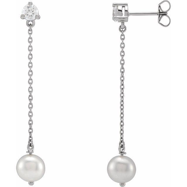 14 Karat White Gold Cultured Freshwater Pearl and 0.50 CT Lab Grown Diamond Earrings