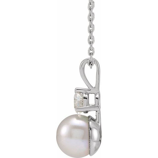 14 Karat White Gold Cultured White Freshwater Pearl & 0.25 Carat Lab Grown Diamond 18 inch Necklace Comes Set With