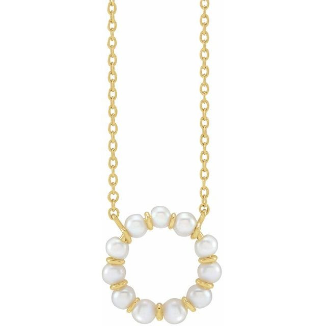 14 Karat Yellow Gold Cultured White Freshwater Pearl Circle 18 inch Necklace