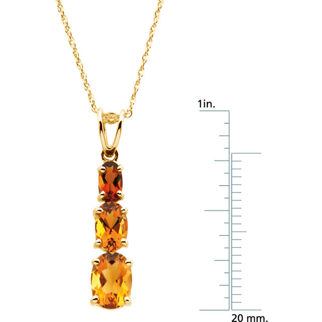 14 Karat Yellow Gold 3 Stone Citrine 18 inch Necklace