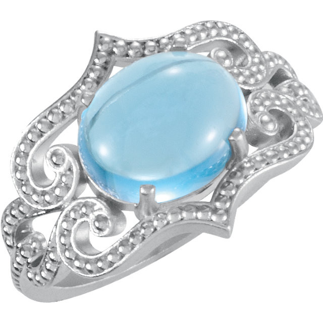 14 Karat White Gold Swiss Blue Topaz Granulated Design Ring
