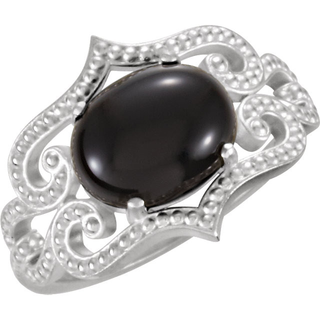 Sterling Silver Onyx Granulated Design Ring is set with selected fine genuine onyx and set with the highest craftsmanship standards in sterling silver