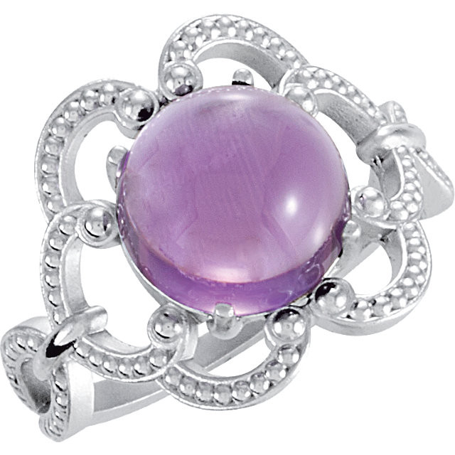 Sterling Silver 10mm Granulated Design Amethyst Ring is set with selected fine genuine amethyst and set with the highest craftsmanship standards in sterling silver