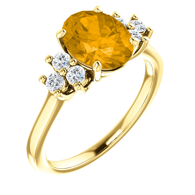 14 Karat Yellow Gold Citrine & 0.25 Carat Total Weight Diamond Ring is set with selected fine genuine citrine and set with the highest craftsmanship standards in 14kt Yellow Gold