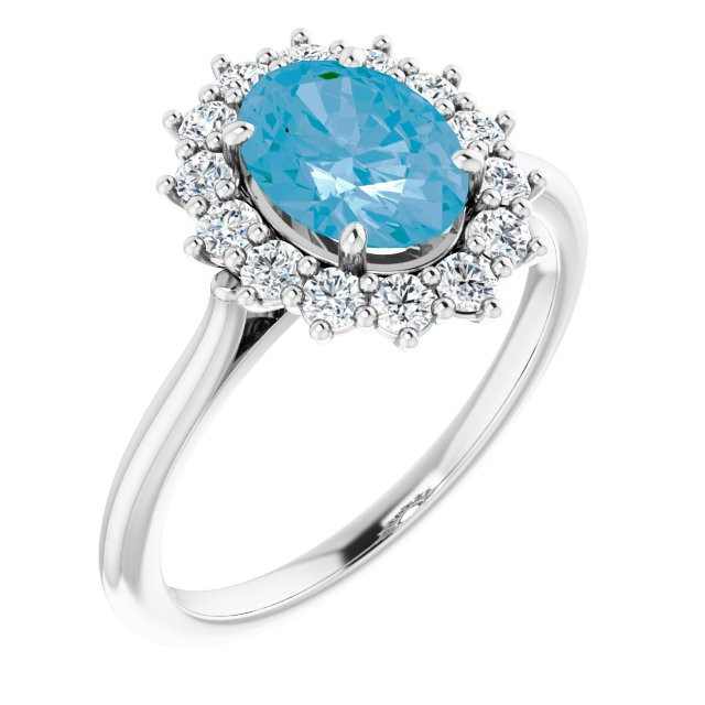 Platinum Swiss Blue Topaz & 0.37 Carat Diamond Ring - Chic Oval Topaz Ring is a timeless jewelry item made in the highest standards for Gemstone Fashion jewelry