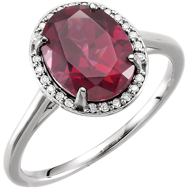 14 Karat White Gold Rhodolite Garnet & .06 Carat Total Weight Diamond Ring is set with selected fine genuine garnet and set with the highest craftsmanship standards in 14kt White gold