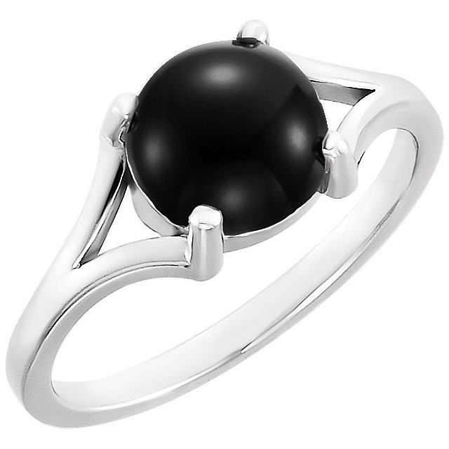 14 Karat White Gold 8mm Round Onyx Cabochon Ring