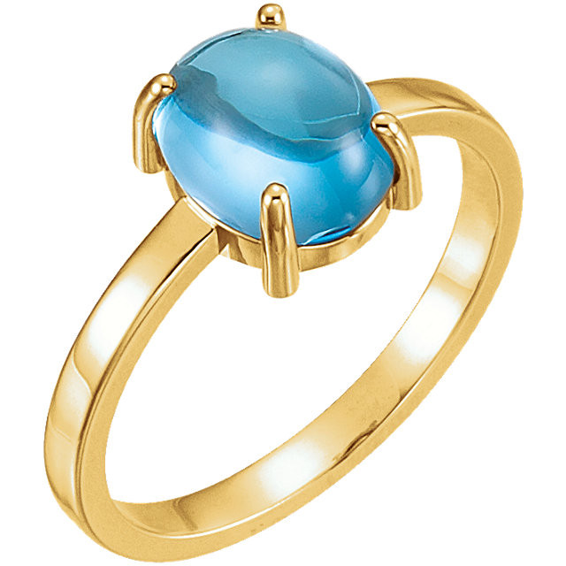 14 Karat Yellow Gold 9x7mm Oval Swiss Blue Topaz Cabochon Ring