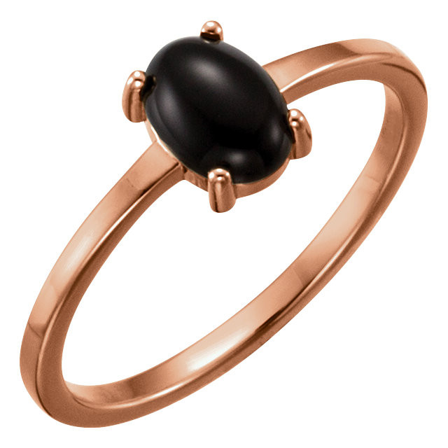 14 Karat Rose Gold 8x6mm Oval Onyx Cabochon Ring is set with selected fine genuine onyx and set with the highest craftsmanship standards in 14kt Rose Gold