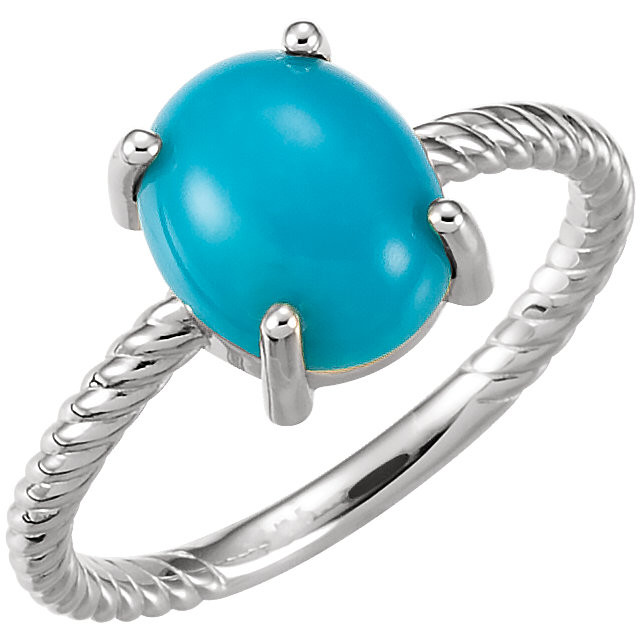 14 Karat White Gold Turquoise Cabochon Ring is set with selected fine genuine turquoise and set with the highest craftsmanship standards in 14kt White gold