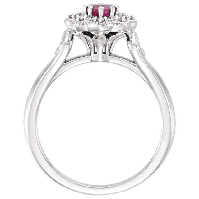 14 Karat Yellow Gold and & White Ruby & 0.10 Carat Total Weight Diamond Ring is set with selected fine genuine ruby and set with the highest craftsmanship standards in 14kt Yellow gold