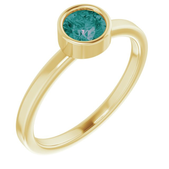 Lab Grown Alexandrite set in 14 Karat Yellow Gold 5 mm Round Lab Alexandrite Ring