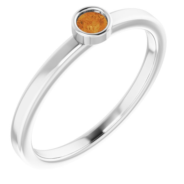 14 Karat White Gold 3 mm Round Citrine Gemstone Ring