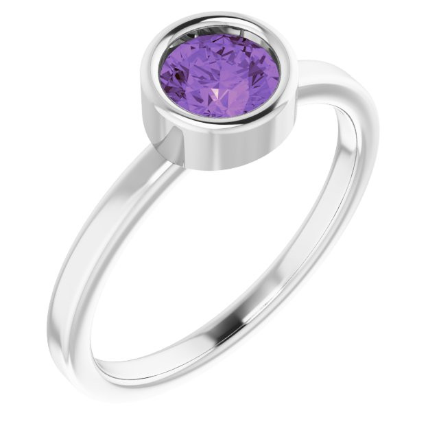Platinum 5.5 mm Round Amethyst Ring - Attractive Round Amethyst Ring is a timeless jewelry item made in the highest standards for Gemstone Fashion jewelry