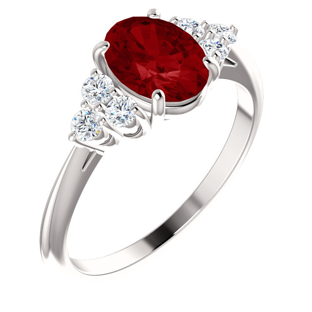 14 Karat White Gold Genuine Lab Grown Created Created Ruby & 0.25 Carat Total Weight Diamond Ring is set with selected fine Lab Grown ruby and set with the highest craftsmanship standards in 14kt White gold