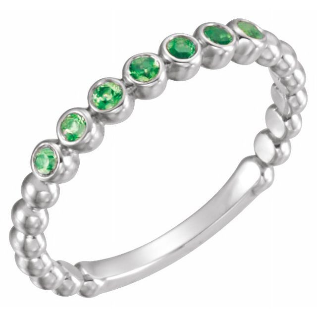 Platinum Lab Grown Created Emerald Stackable Ring - Elegant Round Lab-Created Emerald Ring is a timeless jewelry item made in the highest standards for Gemstone Fashion jewelry