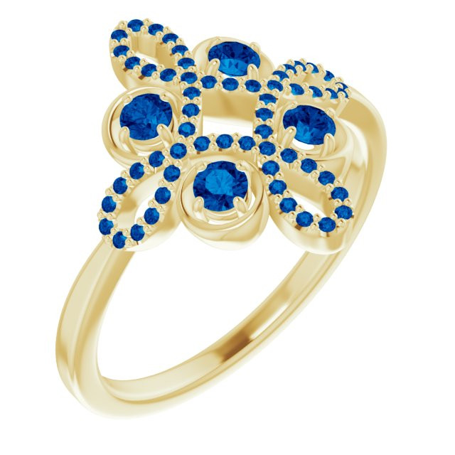 14 Karat Yellow Gold Blue Sapphire & 0.17 Carat Diamond Clover Ring - Lovely Round Sapphire Ring is a timeless jewelry item made in the highest standards for Gemstone Fashion jewelry